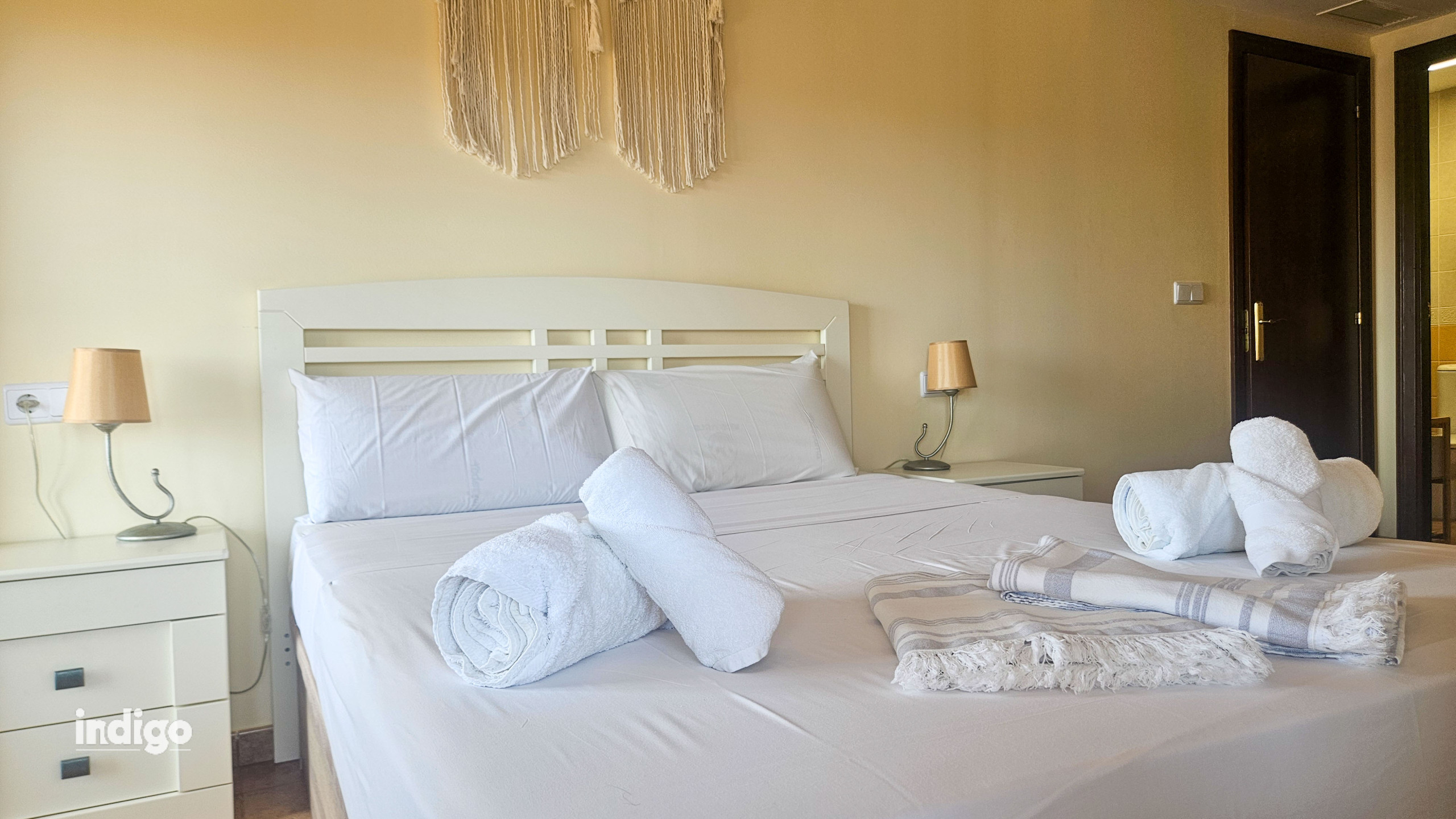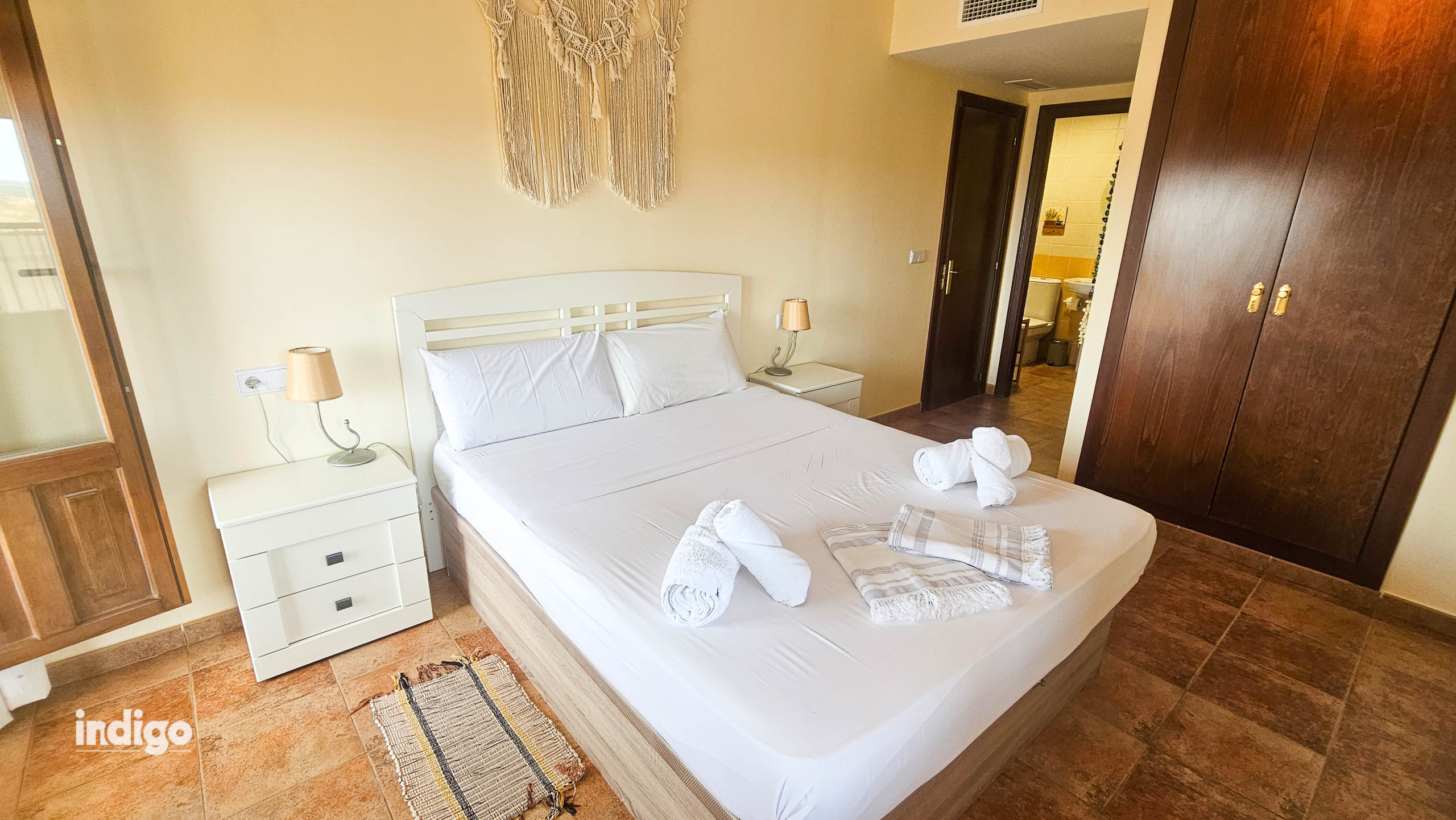 La propiedad cuenta con dos dormitorios con una disposición versátil para dormir: una cama de matrimonio y dos camas individuales, alojando cómodamente hasta 4 huéspedes. Apreciará las comodidades pensadas, incluyendo dos cuartos de baño (uno con ducha y otro con bañera), calefacción central y aire acondicionado para mantenerle cómodo en cualquier temporada.