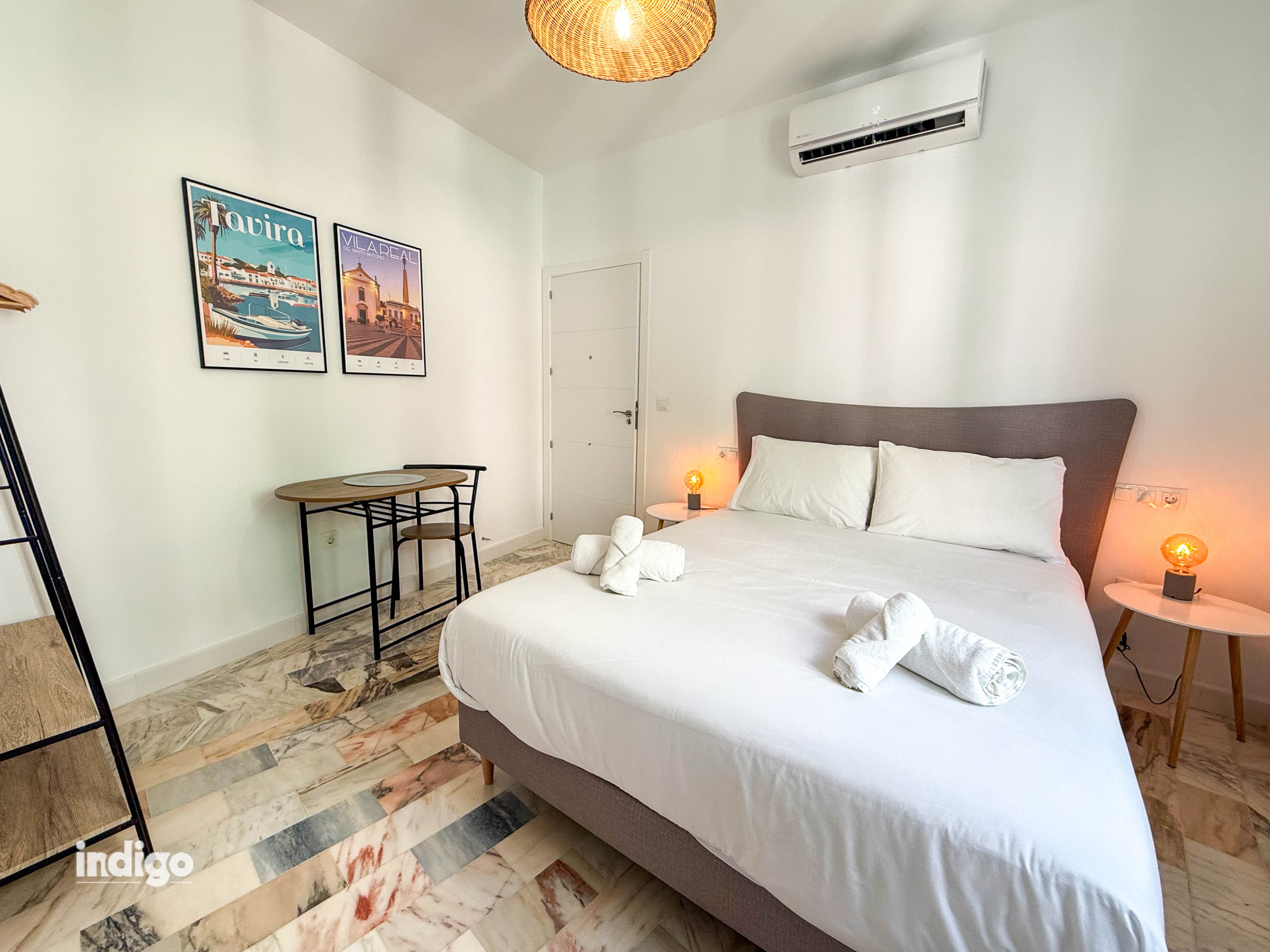 O suite Santa Maria está equipado com uma kitchenette que oferece um frigorífico, placa de indução compacta, utensílios, louça/talheres, instalações para preparar chá e café, Internet de fibra de alta velocidade e secador de cabelo. No átrio partilhado, existe um ferro e tábua de passar a ferro e uma pequena varanda com vista para a rua abaixo, imergindo-o na vida de Ayamonte.