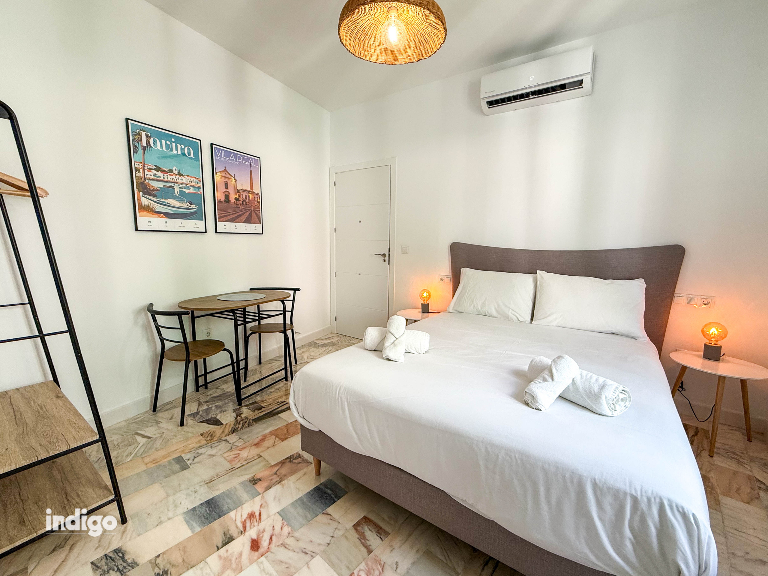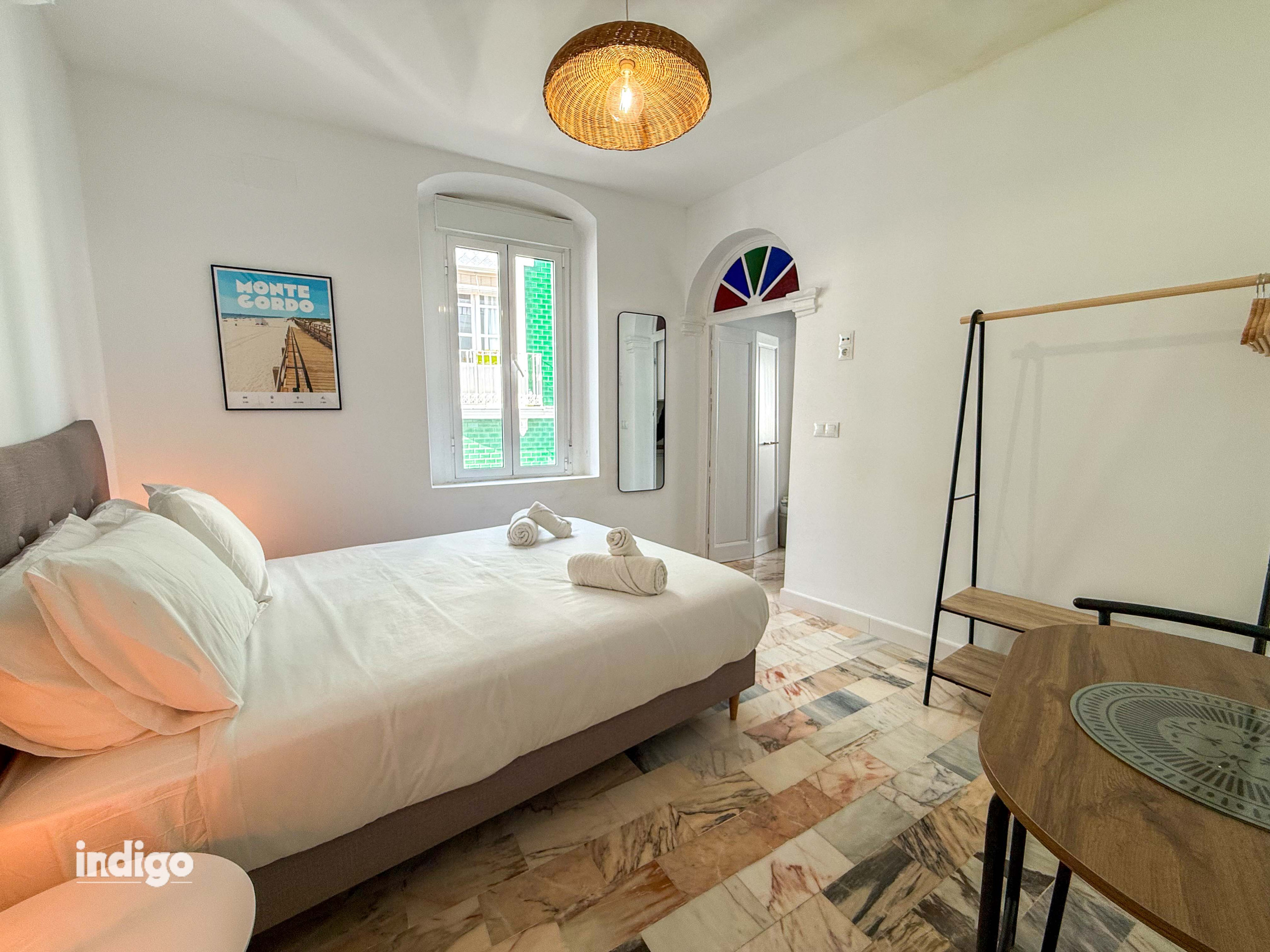 The Santa Maria suite is equipped with a kitchenette offering a refrigerator, compact induction hob, utensils, dishes/cutlery, tea & coffee making facilities, high speed Fibre Internet, and Hairdryer. Within the shared foyer there is a Iron & Ironing board and small balcony with views onto the street below immersing you into Ayamonte life.